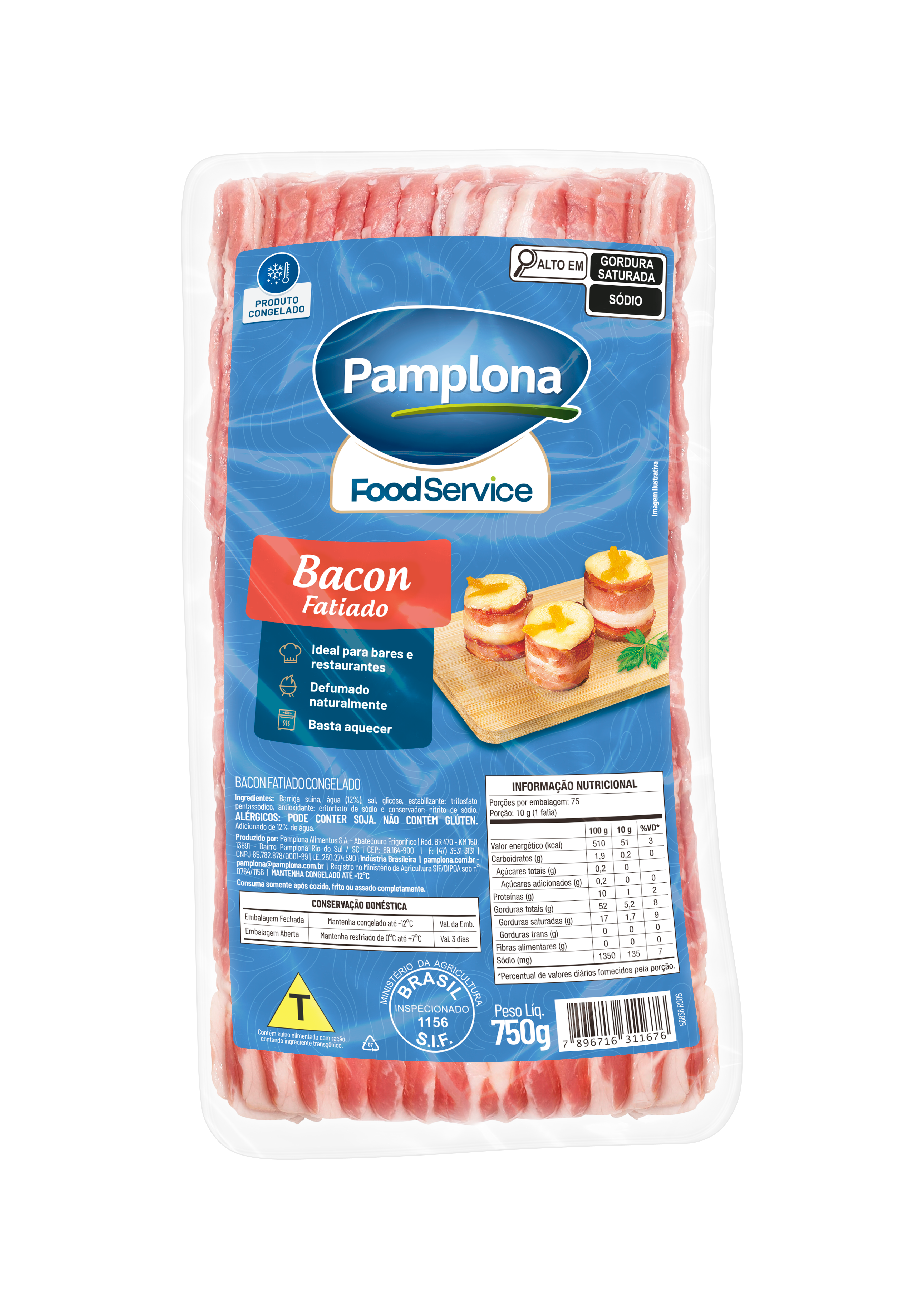 O Bacon Fatiado Congelado 750g Pamplona é a escolha ideal para cozinhas profissionais que exigem sabor autêntico, segurança alimentar e agilidade no preparo. Produzido com cortes suínos selecionados e defumado de forma natural, este bacon é entregue em fatias padronizadas, garantindo uniformidade, crocância e excelente apresentação nos pratos. A versão congelada oferece praticidade no armazenamento e excelente conservação, mantendo sabor, aroma e textura até o momento do preparo. Indicado para uso em restaurantes, lanchonetes, padarias, pizzarias, hotéis e cozinhas industriais. A embalagem de 750g é ideal para porcionamento e evita desperdícios. Pamplona, referência em alimentos suínos de alta qualidade há mais de 77 anos.