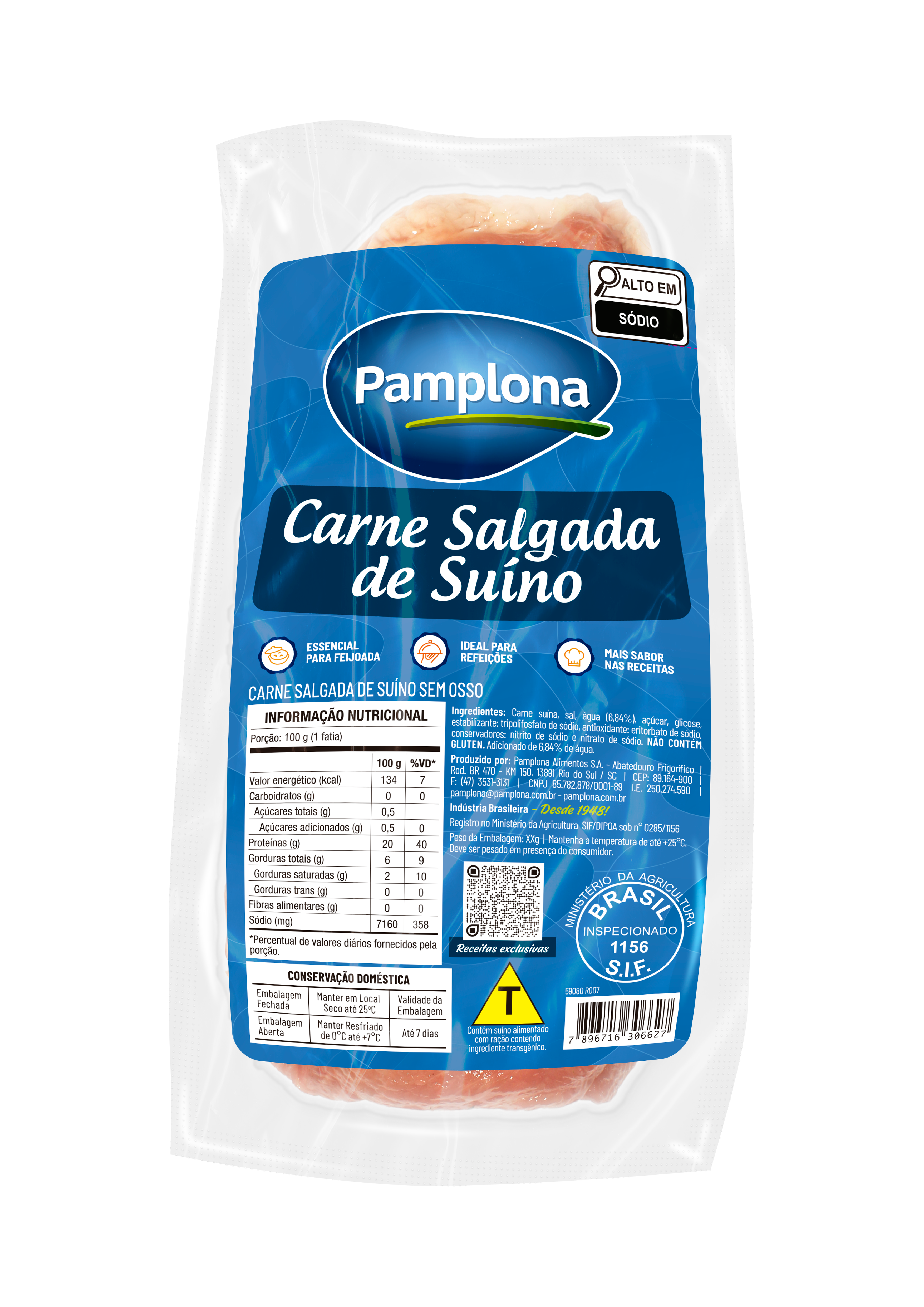 Carne Suína Salgada Sem Osso Pamplona: ideal para feijoadas e pratos típicos. Prática, com sabor autêntico e tradição na culinária brasileira.